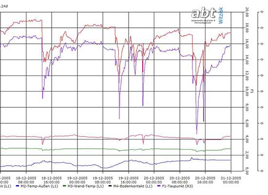 Die auf diese Weise gewonnenen Daten geben Aufschluss über das Temperatur- u. Feuchteverhalten in den zu überwachenden Räumen.